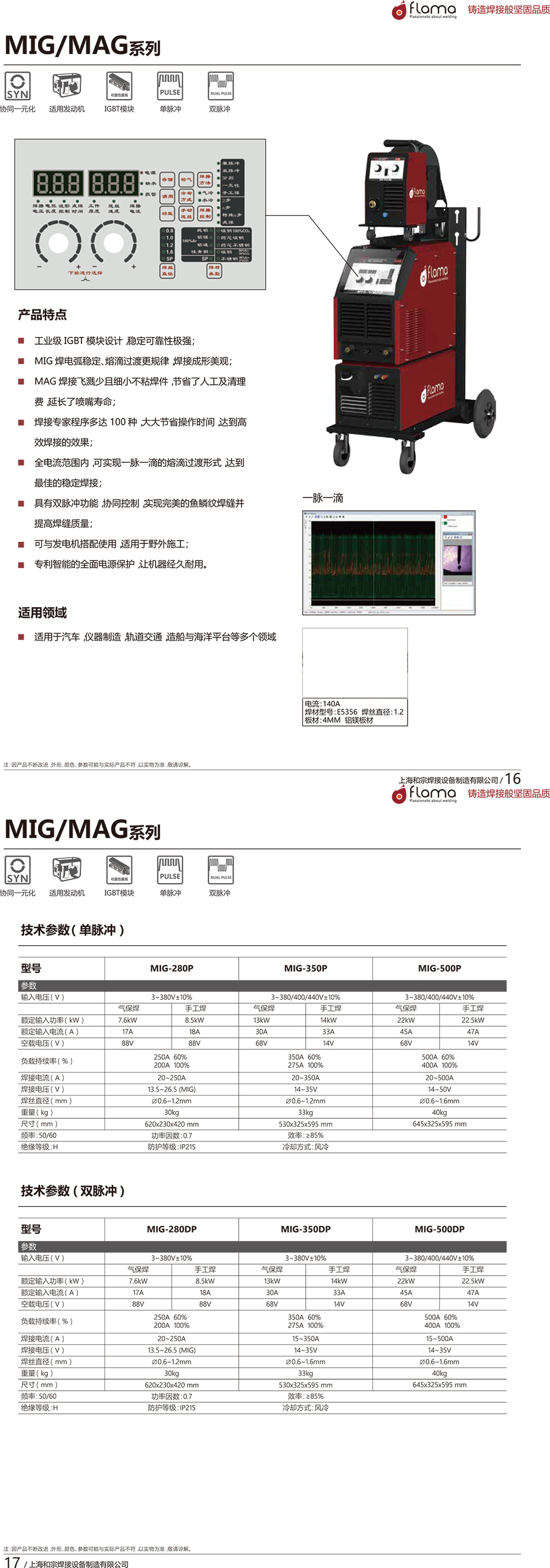 - 全电流范围内,可实现一脉一滴的熔滴过渡形式,达到稳定焊接的效果;