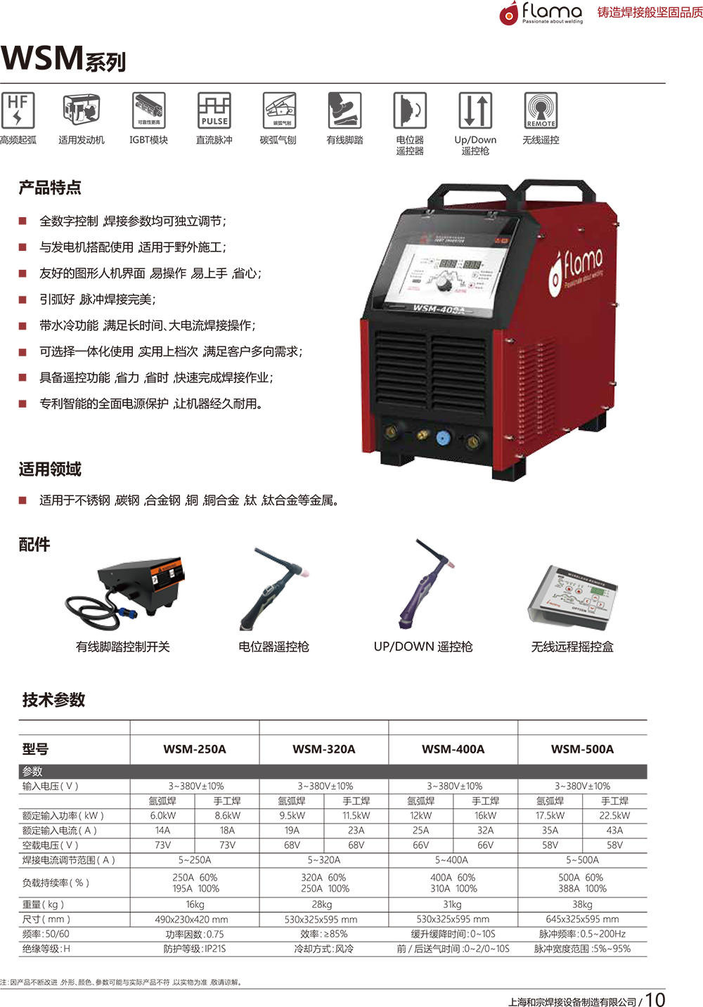 • 全数字控制,焊接参数均可独立调节